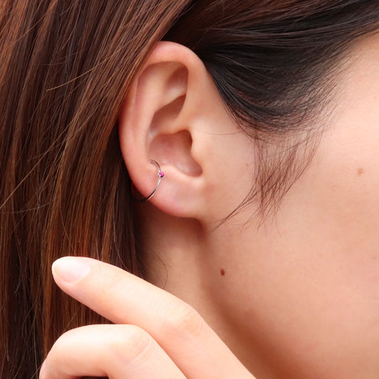 イヤーカフ 誕生石 レディース 幾何学 一粒 丸型 円 シンプル 細身 片耳用 天然石 K10 K18 PT900 ノンホールピアス 選べる誕生石 重ね付け (品番 me-0042)