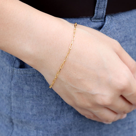 レディース 18金 チェーンブレスレット イエローゴールド ペーパークリップ 中空 K18YG ブレスレット 女性 ユニセック プレゼント おしゃれ (品番 p-c-065-18-k18-l)