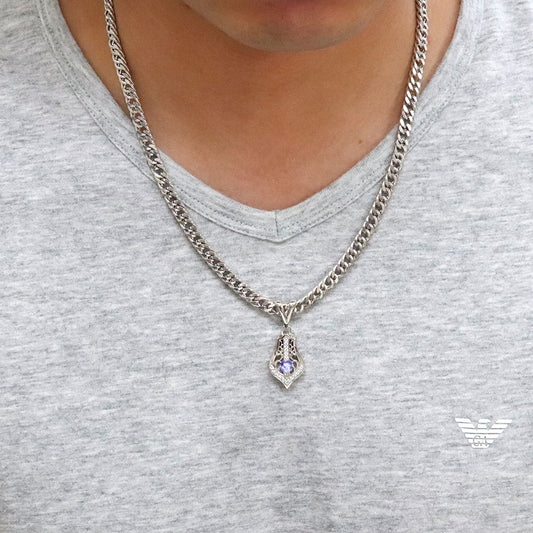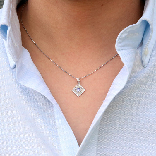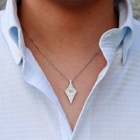 ペンダント メンズ 洋彫 ネックレス ひし形 唐草 K10 K18 PT900 SV925 選べる誕生石 3mm 天然石 カッコイイ 個性 綺麗 父の日 (品番 mh-0406-m)