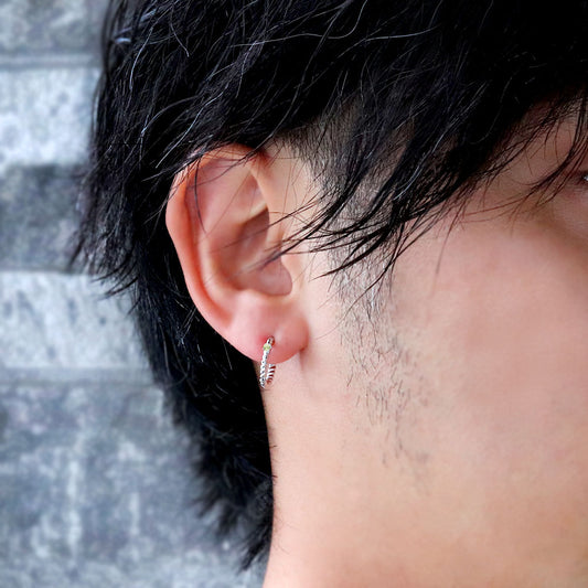 ピアス メンズ フープピアス 中折れ式 フープ ツイスト ひねり 縄 ロープ 片耳 キャッチレス 10金 18金 プラチナ (品番 mp-0176-m)