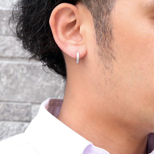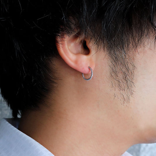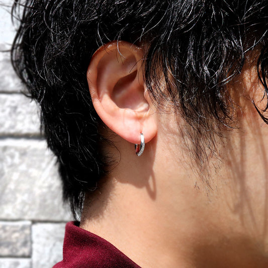 フープピアス あらし加工 メンズ シンプル 中折れ式 フープ 片耳 キャッチレス 地金 10金 18金 プラチナ ピアス (品番 mp-0170-m)