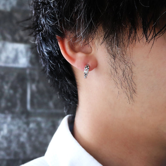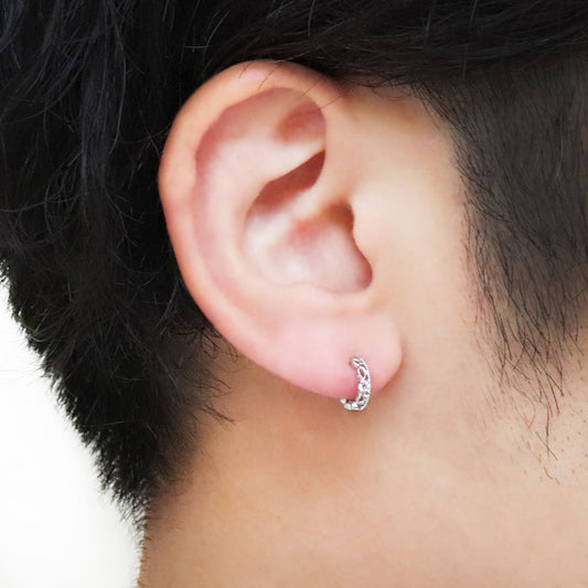 メンズ 中折れ式 フープピアス 手彫り ハワイアンジュエリー 片耳 キャッチレス 洋彫り ピアス フープ k10 k18 pt900 sv925 (品番 mp-0170-c-m)