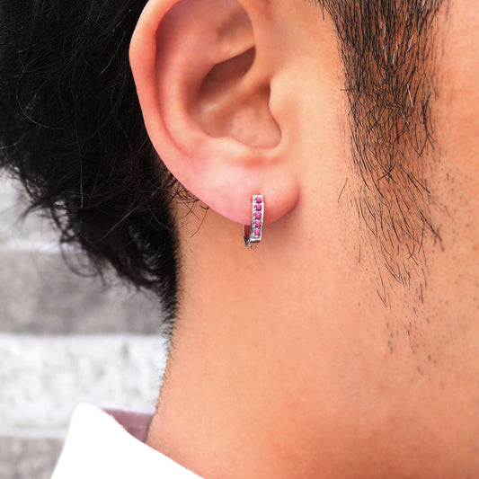メンズ フープピアス ダイヤモンド ピアス 4月 誕生石 天然石 シンプル 中折れ式 フープ 片耳 10金 18金 プラチナ (品番 mp-0162-4-m)