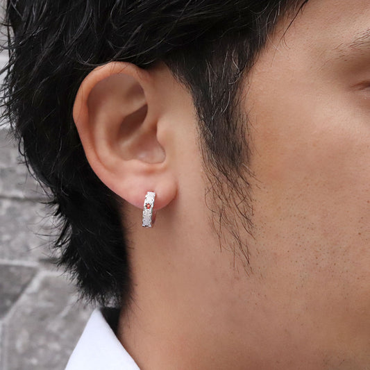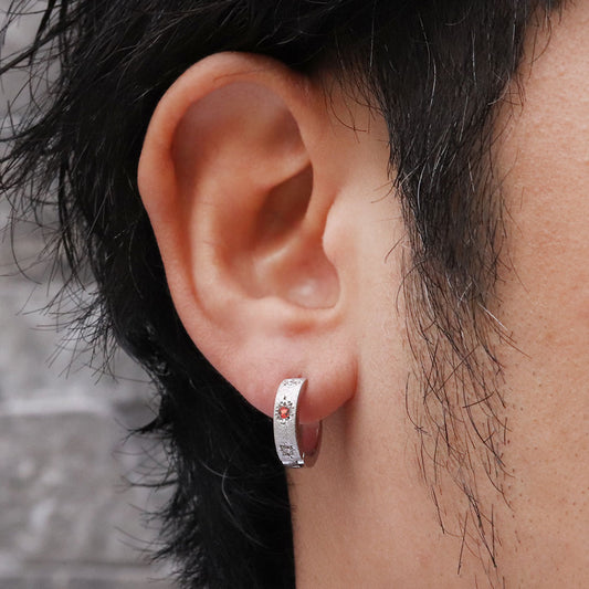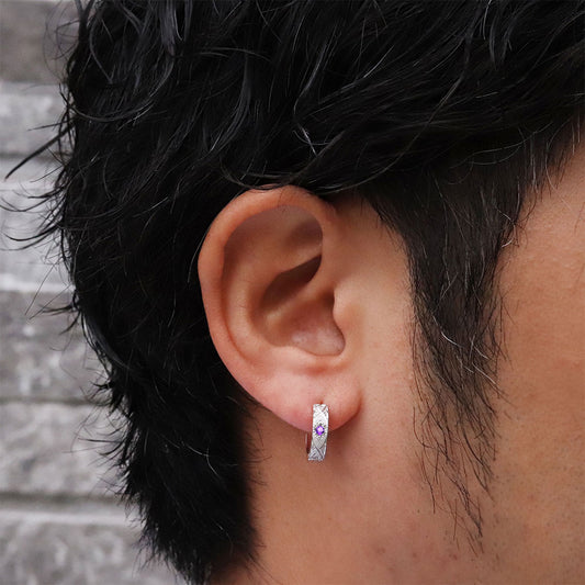 ピアス メンズ フープ 洋彫り 誕生石 中折れ式 フープピアス 彫り 片耳 10金 18金 プラチナ シルバー 天然石 選べる誕生石 一粒 男性 (品番 mp-0171-e-m)
