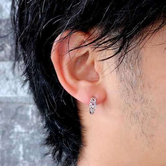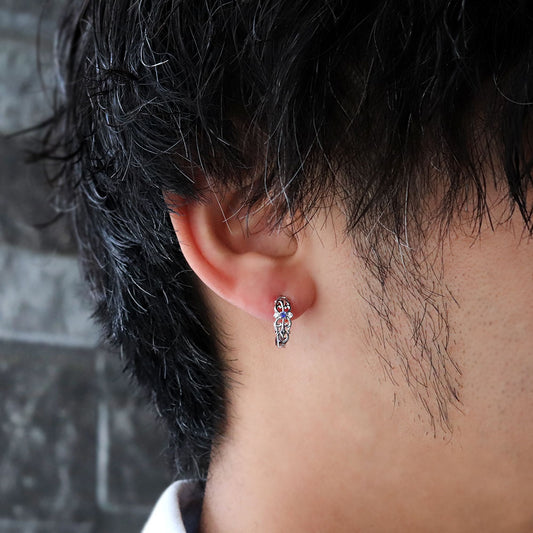 メンズ フープピアス 唐草 中折れ式 オシャレ 選べる誕生石 10金 18金 プラチナ シルバー 片耳用 天然石 十字架 クロス カップル お揃い ペア (品番 mp-0180)