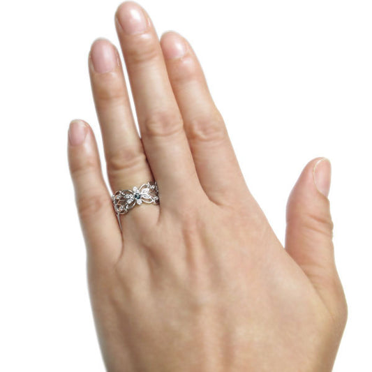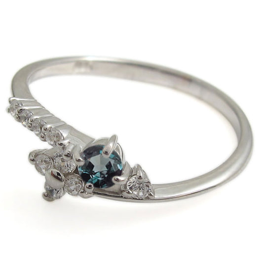 指輪 リボン リング レディース アレキサンドライト 希少石 シルバー 10金 18金 プラチナ ピンキー ハーフエタニティ りぼん 大人 可愛い (品番 mr-0093-alex)