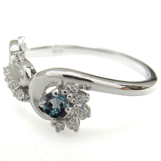 プラチナ レディース アレキサンドライト フラワー ダイヤモンド 指輪 18金 10金 天然石 花 希少石 10周年 メモリアルリング (品番 mr-0247-alex)