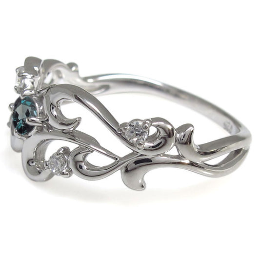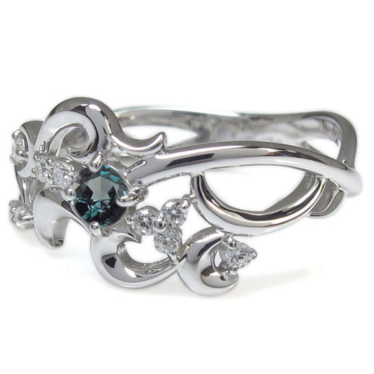 結婚10周年 指輪 唐草 プラチナ 18金 10金 アレキサンドライト エンゲージリング メモリアルリング 婚約指輪 希少石 天然石 (品番 mr-0257-alex)