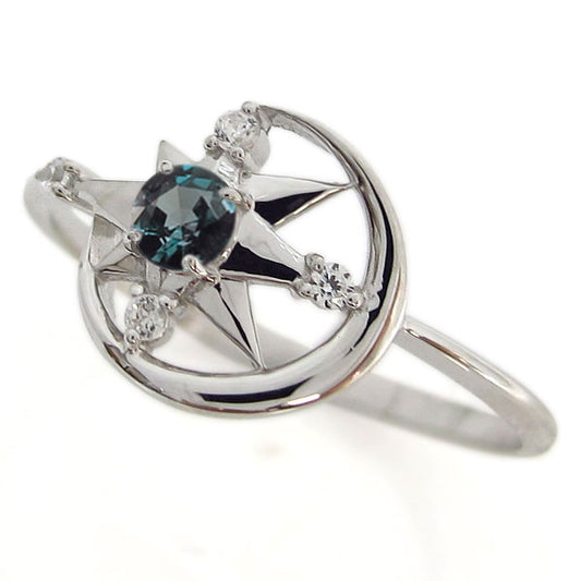 ムーンスター リング レディース プラチナ 18金 10金 希少石 星 月 指輪 三日月 天然石 ムーン ダイヤモンド アレキサンドライト (品番 mr-0241-alex)