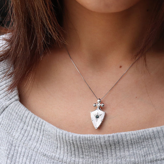 レディース ペンダント 希少石 アレキサンドライト シールド 手彫り 10金 18金 プラチナ シルバー 盾 十字架 ネックレス (品番 mh-0407-alex-l)