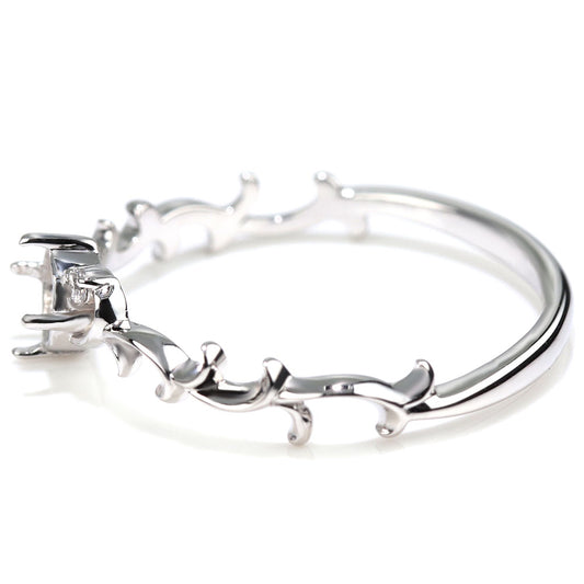 レディース 指輪 シンプル エンゲージ リング 空枠 セミオーダー 4mm 唐草 K10 K18 Pt900 SV925 アラベスク 綺麗 婚約指輪 ソリティア プロポーズ (品番 mpr-0153-kw)