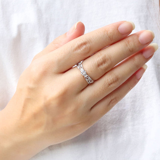 アンティーク調 レディース リング 18k 空枠 セミオーダー 指輪 唐草 ミル打ち 4mm 10k pt900 sv925 ダイヤ 綺麗 透かし (品番 mr-0440-kw)