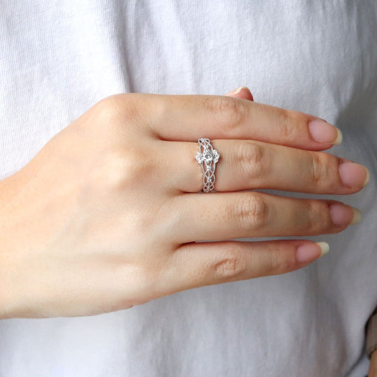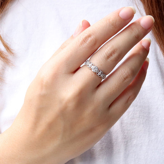 レディース リング空枠 ミル打ち レース フラワー かわいい 指輪 セミオーダー 4mm k10 k18 pt sv 花 綺麗 女性 おすすめ プレゼント (品番 mr-0442-kw)