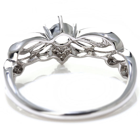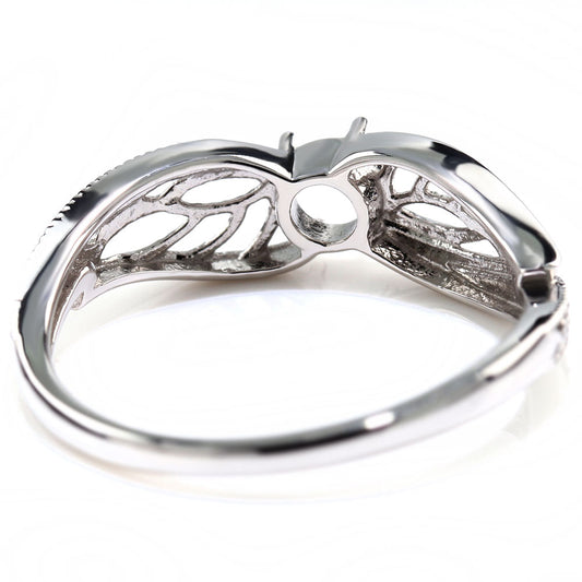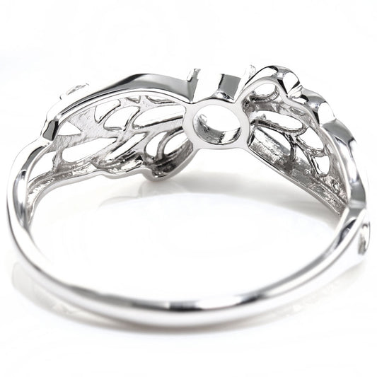 リング 指輪 レディース プラチナ 透かし 羽 フェザー リング枠 4mm セミオーダー 18金 10金 シルバー 妖精 ミル打ち 綺麗 リーフ ラインストーン 贈り物 (品番 mr-0449-kw)