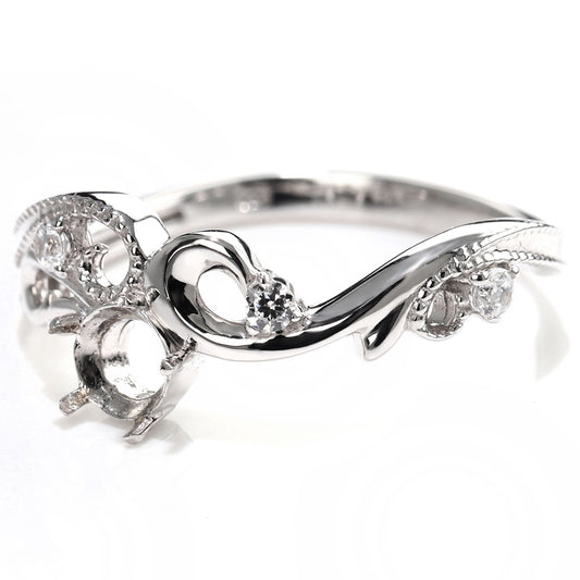 リング枠 セミオーダー レディース 指輪 リーフ 4mm ミル 18金 10金 プラチナ シルバー 綺麗 ダイヤ 女性 ジュエリー リフォーム ゴージャス (品番 mr-0443-kw)