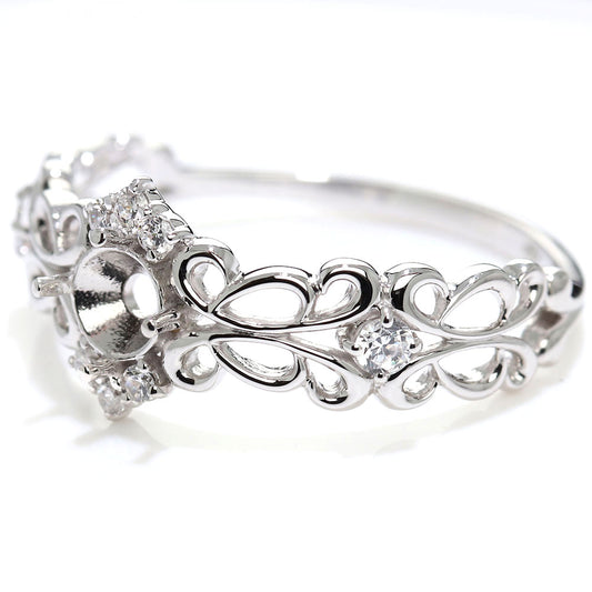 指輪 セミオーダー レディース 空枠 ティアラ ダイヤモンド 唐草 リング k10 k18 pt900 sv925 3mm リング枠 プリンセス 上品 女性 リメイク (品番 mr-0439-kw)