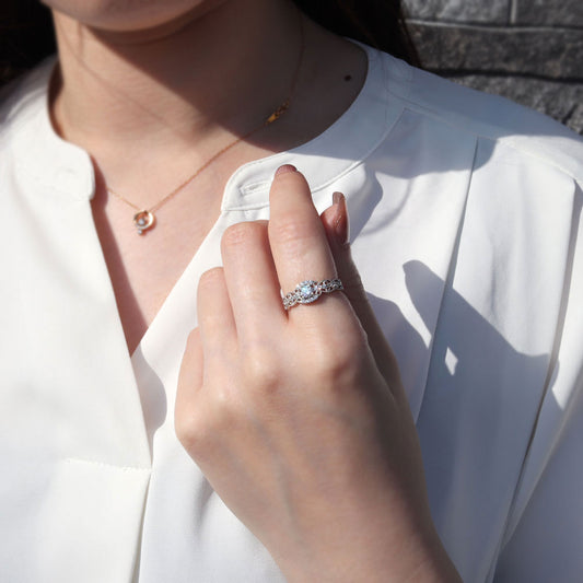 空枠 セミオーダー 指輪 4mm 取り巻き リング ゴージャス ダイヤモンド ヘイローリング k10 k18 pt900 sv925 レディース ハート アンティーク調 (品番 mr-0438-kw)