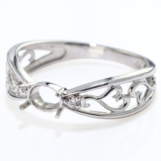 簡単 カスタム リング 空枠 指輪 レディース オーバル 4×5mm 絞り 唐草 ハート pt900 k18 k10 sv925 パーティー フォーマル セミオーダー (品番 mr-0232-kw)