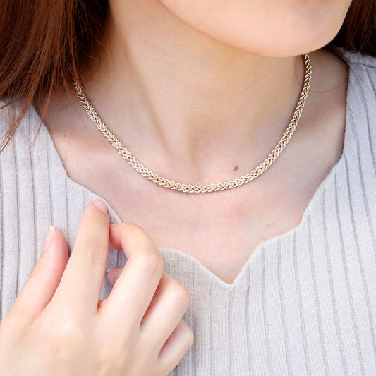 K18YG ネックレス チェーン 中空 ビスマルクチェーン 5列 太め ゴールド 18金 レディース 幅5.0mm 女性 大人 プレゼント 誕生日 記念日 (品番 bismarck-h-040-k18-l)