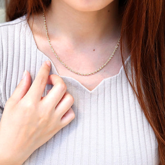ロープチェーン レディース ネックレス 18金 中空チェーン ゴールド k18 軽い 中空ネックレス シンプル ユニセックス おしゃれ お揃い 地金 (品番 rope-h-050-k18-l)