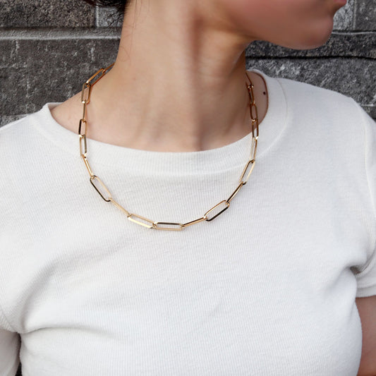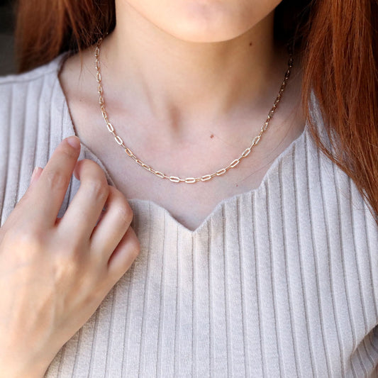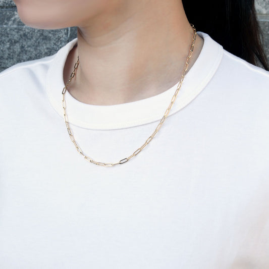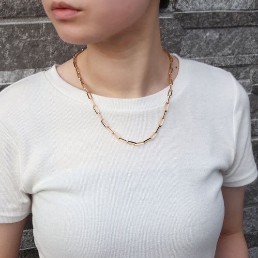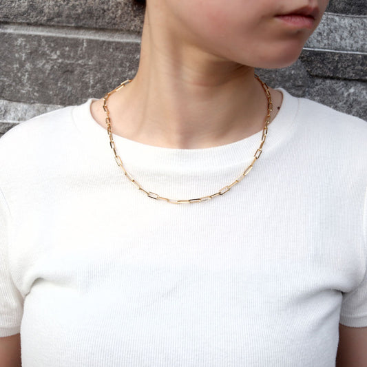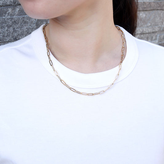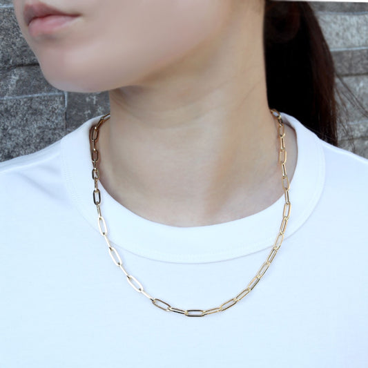 レディース チェーンネックレス 18金 ゴールド 中空チェーン ペーパークリップ K18YG 軽い 中空 おしゃれ カジュアル かっこいい クリップ型 (品番 p-c-h-125-k18-l)