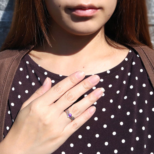 シルバー925 レディースリング 指輪 選べる誕生石 ミル打ち バットウィング 10金 18金 プラチナ リング ロック コウモリ 翼 ミステリアス (品番 mr-0445)