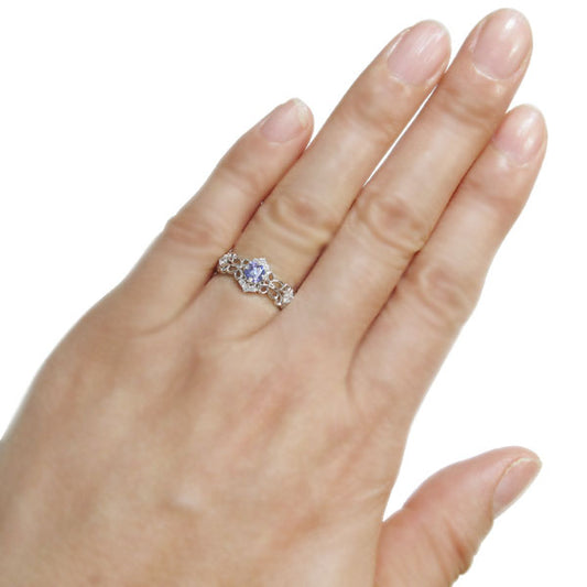 18金 ダイヤモンド 指輪 レース レディース 花モチーフ 10金 プラチナ シルバー フラワー ミル打ち 天然石 4月誕生石 フラワーリング (品番 mr-0345-4)