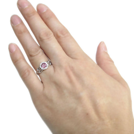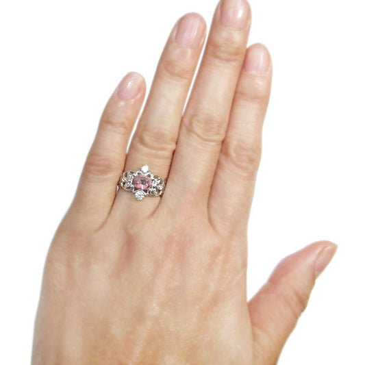 ロードクロサイト リング プラチナ 唐草 レディース アンティーク 指輪 pt900 アラベスクリング 天然石 ティアラ ダイヤモンド (品番 mr-0214-rhodochrosite-pt)