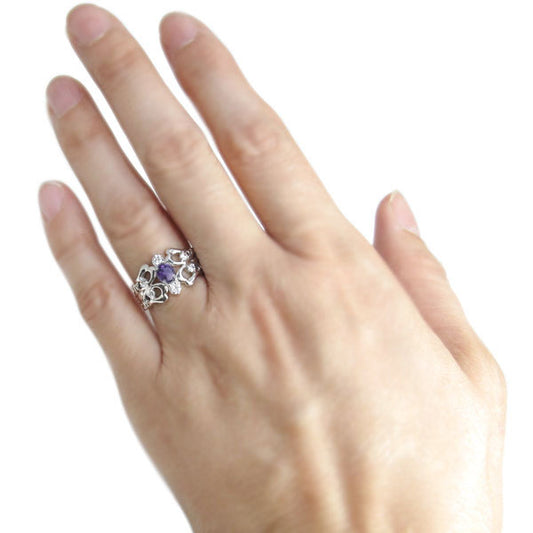 唐草 レディースリング アンティーク 指輪 選べる誕生石 10k 18k pt900 アラベスクリング 天然石 ティアラ ダイヤモンド (品番 mr-0214)