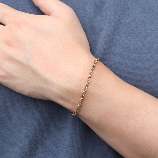 ブレスレット イエローゴールド K18 中空チェーン メンズ アンカーチェーン K18YG 中空 地金 シンプル おしゃれ 軽い 中空 お揃い ユニセックス (品番 anchor-h-080-18-k18-m)