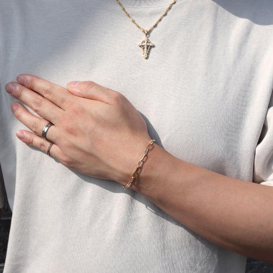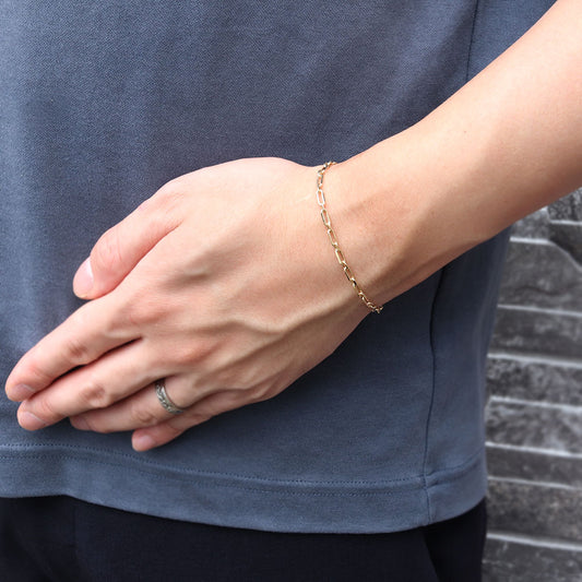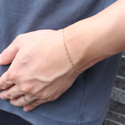 ブレスレット メンズ 18金 イエローゴールド 中空チェーン ペーパークリップ K18YG 中空 地金 ブレス 男性 大人 お洒落 人気 重ね付け (品番 p-c-h-085-18-k18-m)