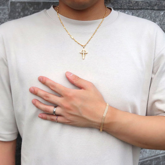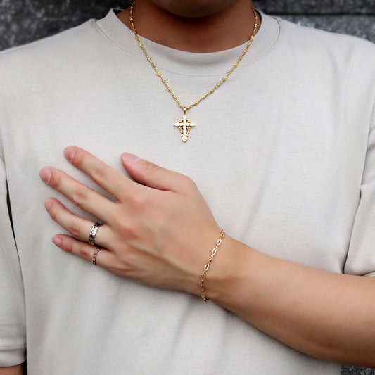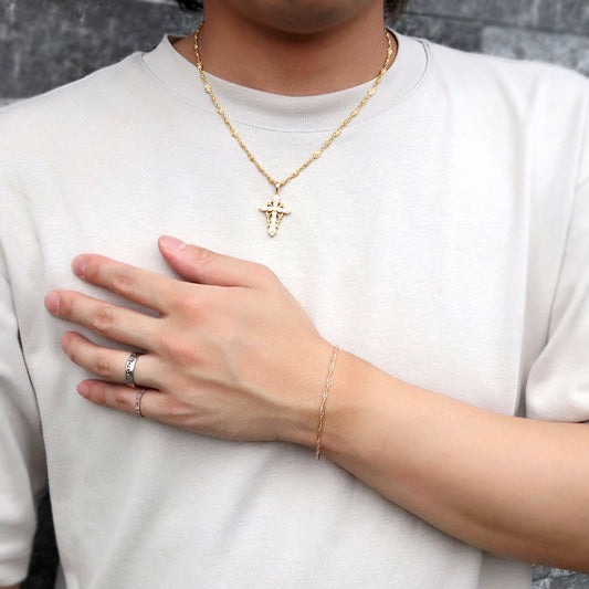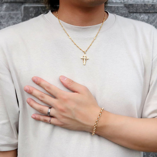 K18YG メンズ ブレスレット 中空 ペーパークリップ プレイド 格子柄 ブレス 18金 かっこいい 大人 男性 彼氏 夫 お洒落 メンズジュエリー (品番 p-c-plaid-h-080-18-k18-m)