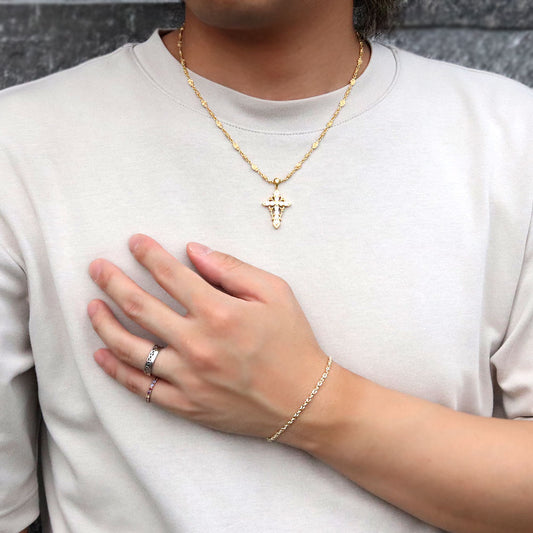 K18YG ブレスレット メンズ 小豆チェーン 18金 組み合わせ パーツ ショート&ロング チェーン 地金 あずき ブレス 男性 大人 つけっぱなし (品番 azuki-sl-h-065-18-k18-m)