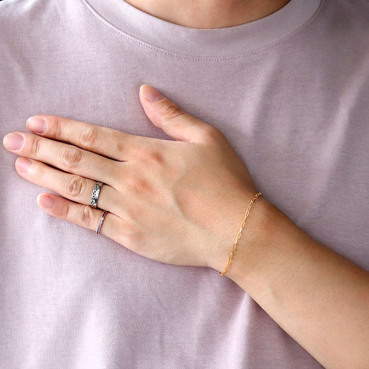 24金 ブレスレット メンズ ペーパークリップ 純金 24k イエローゴールド チェーン 幅2.2mm ユニセックス K18YG メンズブレスレット (品番 p-c-b-k24-m)