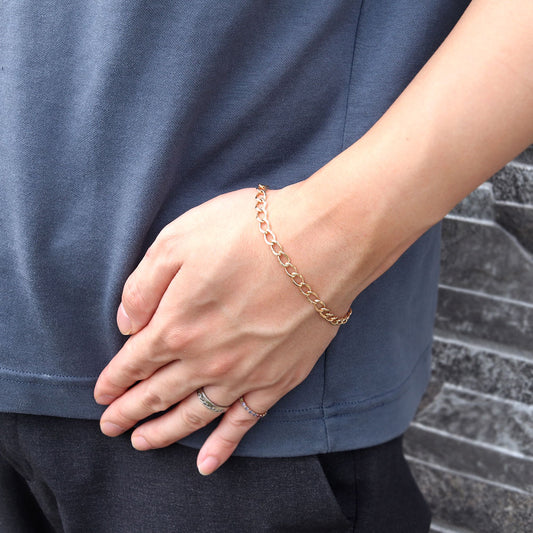メンズ 18金 ブレスレット イエローゴールド K18YG 太め 中空 ロロチェーン 地金 ブレス ロロ 男性 大人 高級感 ご褒美 ボーナス ジュエリー (品番 rolo-h-040-18-k18-m)