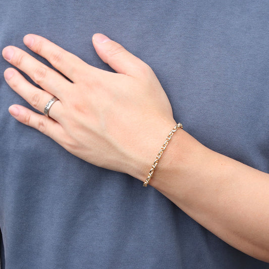18金 ブレスレット メンズ スクリューチェーン 中空 地金 K18 イエローゴールド ブレス 男性 大人 つけっぱなし スクリュー お洒落 重ね付け (品番 screw-h-035-18-k18-m)