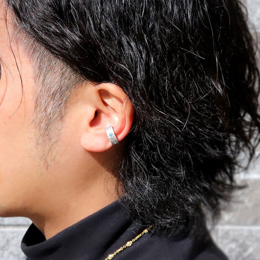 イヤーカフ 幅広 メンズ レディース 片耳 パライバトルマリン ワイド pt900 k18 k10 手彫り 希少石 彫金 おそろい カップル (品番 me-0062-a-para)