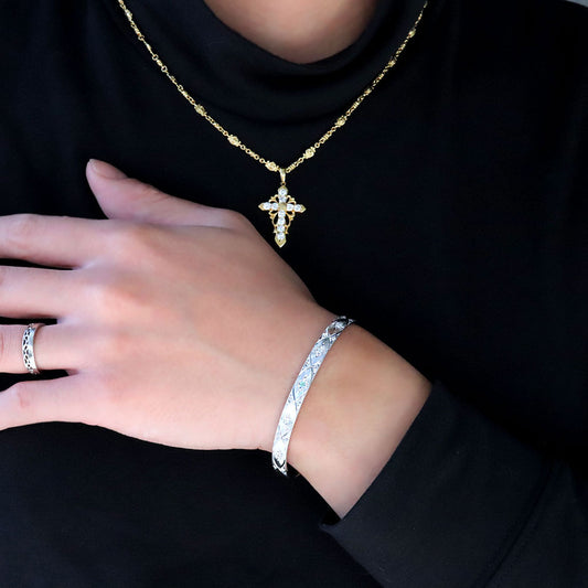 バングル レディース 唐草 彫金 パライバトルマリン アラベスク 天然石 10金 18金 プラチナ 地金 希少石 ブレスレット 手彫り お揃い ギフト (品番 mpb-0083-a-para-l)