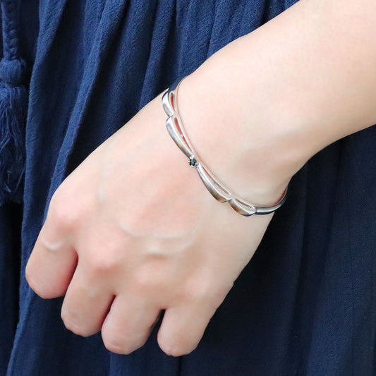 リボン バングル レディース 細め アレキサンドライト りぼん 10金 18金 プラチナ シルバー 天然石 一粒 希少石 k10 k18 pt900 sv925