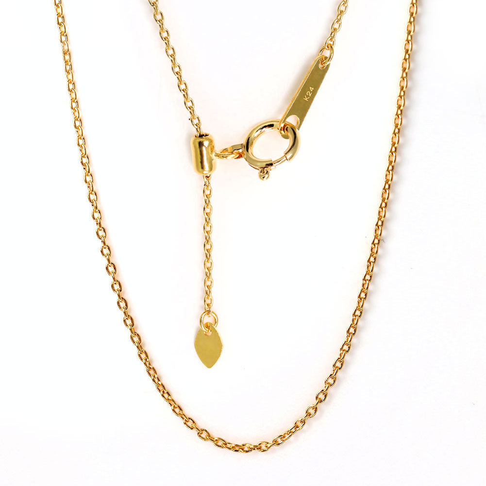 純金製の丸小豆チェーン(ネックレス)です。きらきらと煌めくシンプルで上品なチェーンネックレス。スライド式のアジャスター付きなので、最長45cmまでお好みの長さに調整できます。