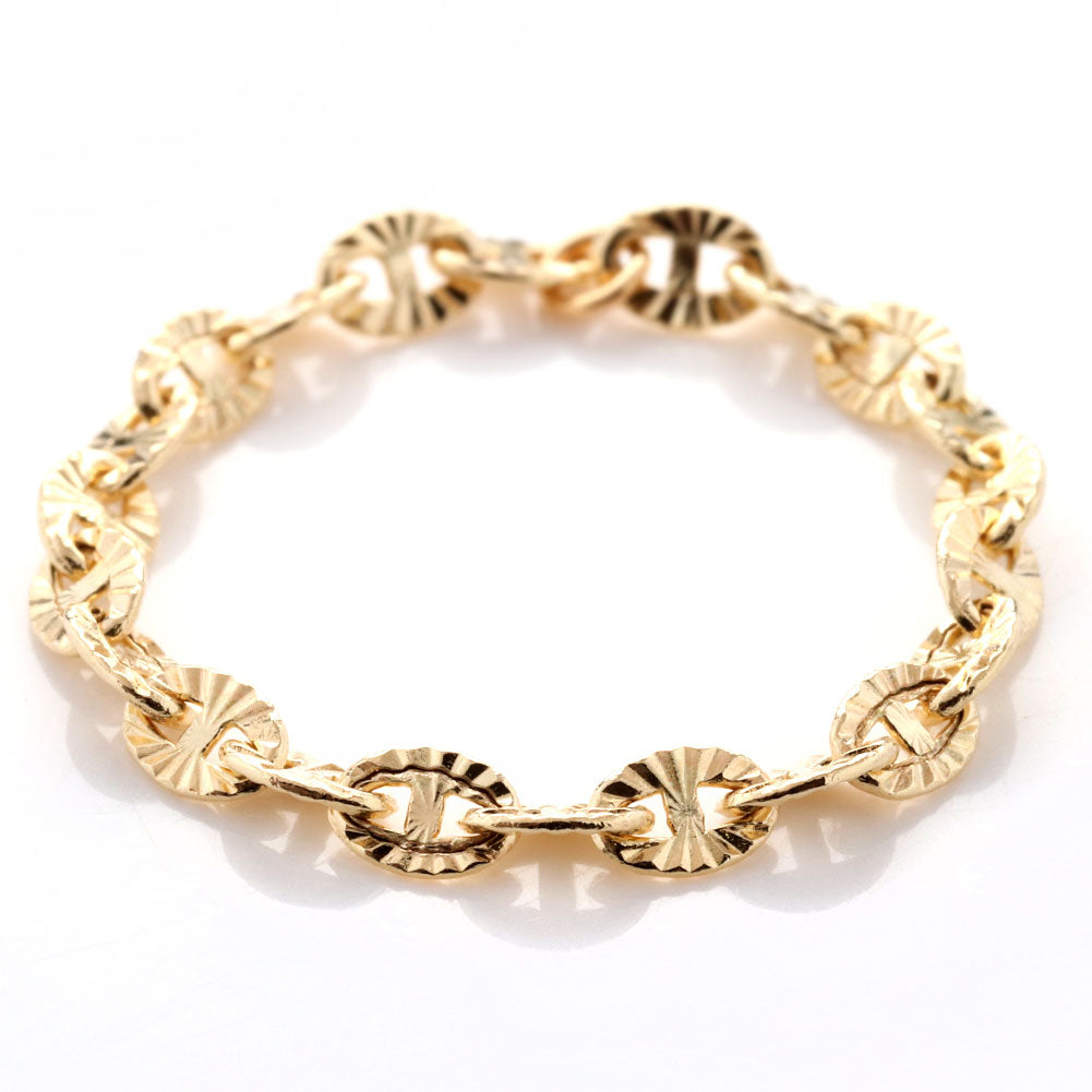 18金製の中空、ルナデザインのチェーンリングです。Tシャツなどのラフカジュアルにも、フォーマルウェアにも合う、大人コーデのスキンジュエリーとして活躍します。