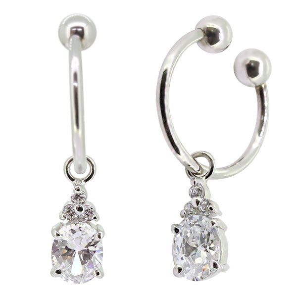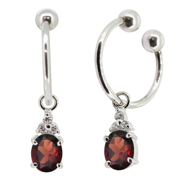 揺れる オーバル 大粒 フープイヤリング レディース イヤーカフ 選べる誕生石 天然石 k10 k18 pt900 ノンホールピアス 両耳用 (品番 me-0017)