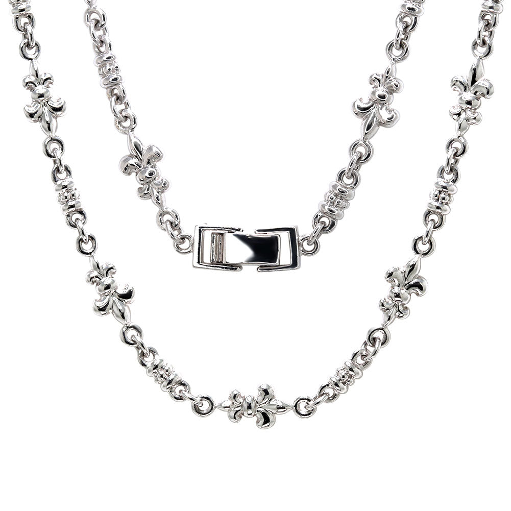 シルバー チェーン ネックレス 百合の紋章 お揃い ペア オリジナル 中折れ SV925 K10 K18 Pt900 メンズ クラスプチェーン ユニセックス (品番 mh-0056)
