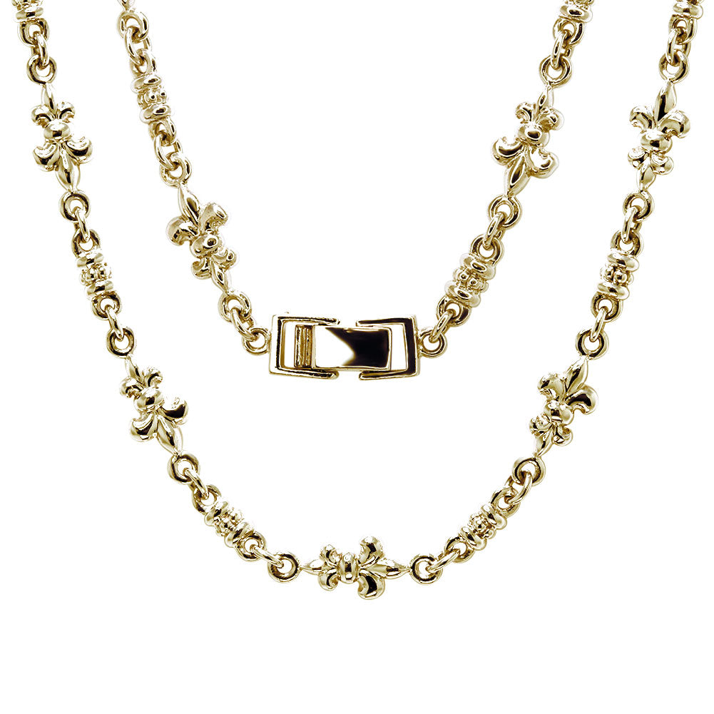 百合の紋章をモチーフにしたメンズネックレス(チェーン)です。 贅沢に地金を使用した、PLEJOURオリジナルデザインの人気チェーンです。単体での着用はもちろん、お手持ちのペンダントトップとのコーディネート、ペアネックレスにもおすすめです。