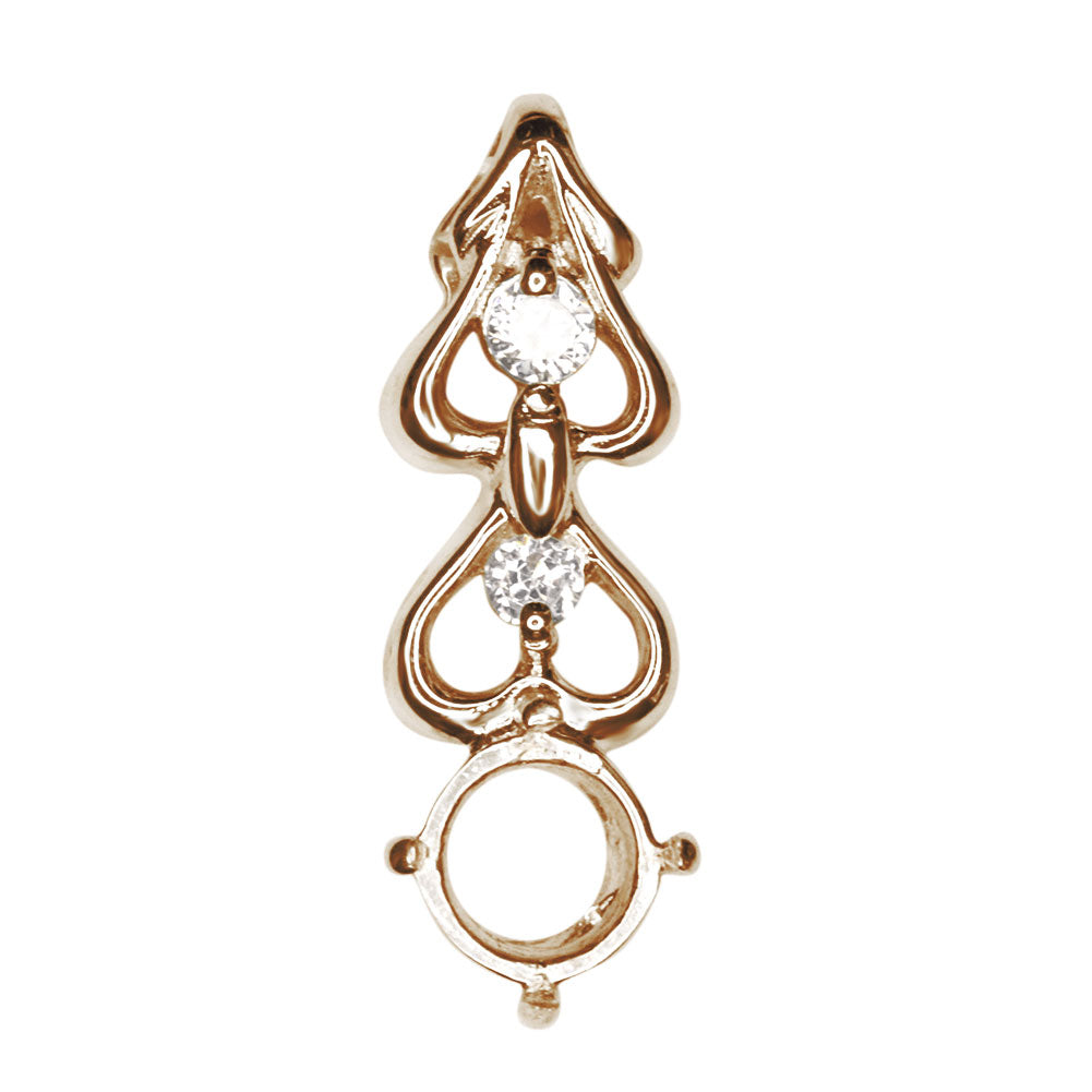 こちらは4mm(ラウンド)のルースが留まるペンダント空枠です。側面には小さなハートの抜き模様をあしらい、可憐さをさりげなくプラス。シンプルで上品な仕上がりにしています。