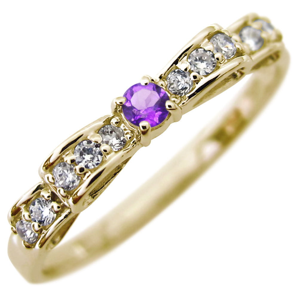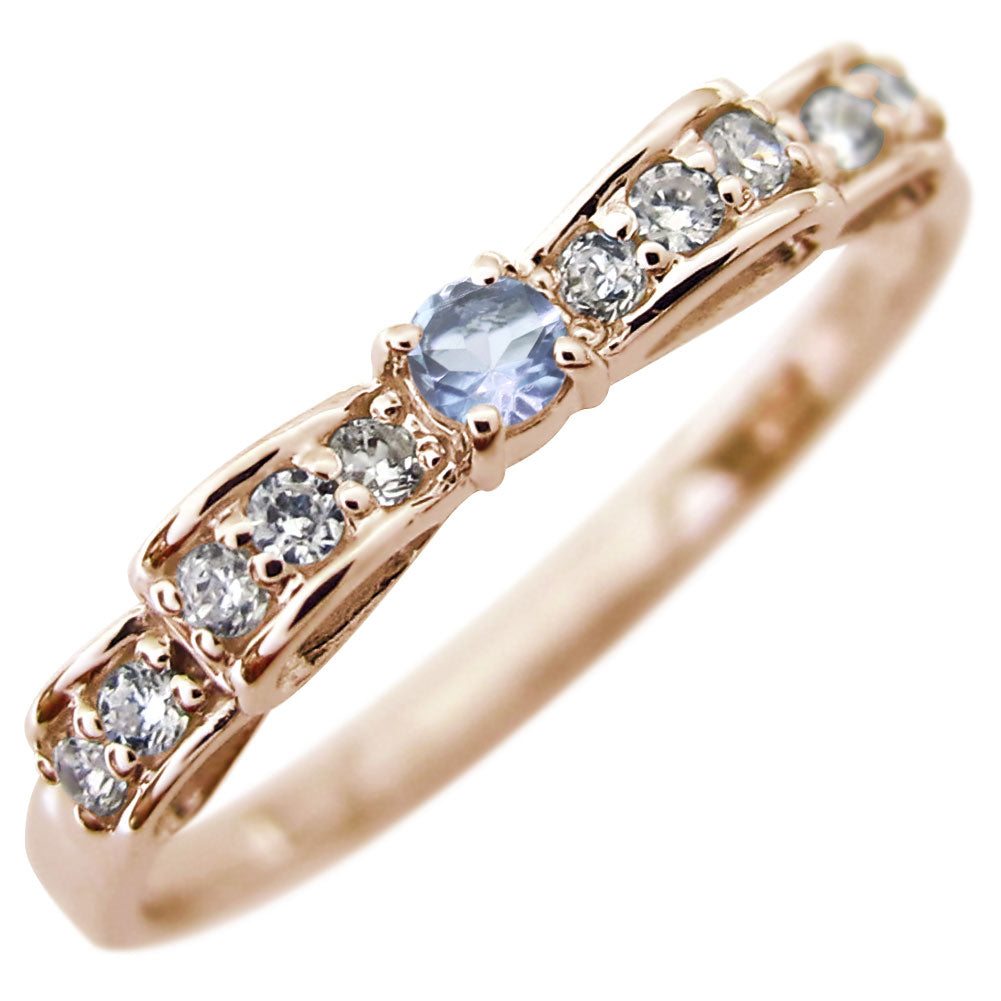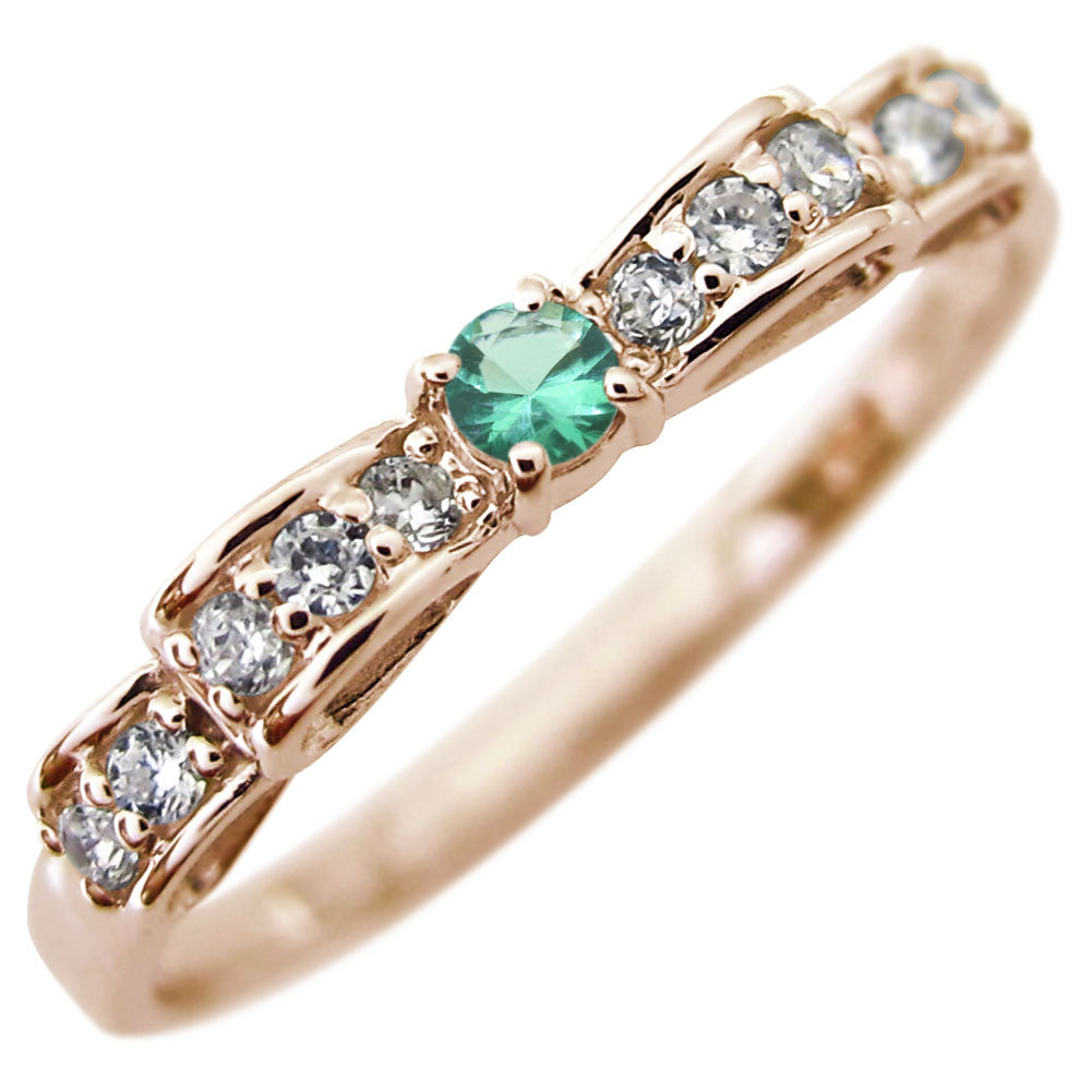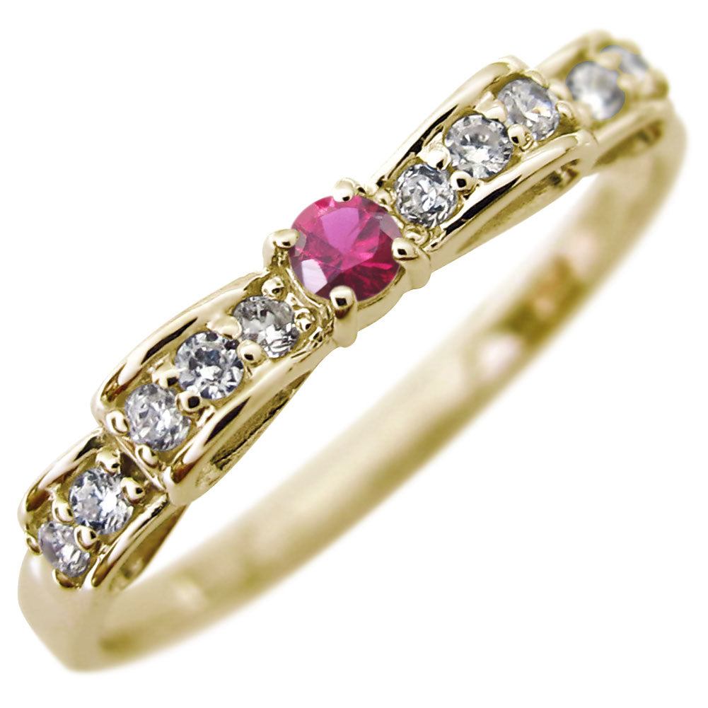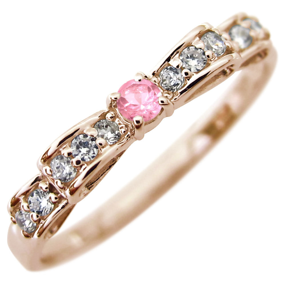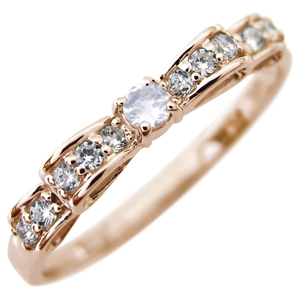 ハーフエタニティ リボン 指輪 可愛い レディース リング 誕生石 ピンキー 10金 18金 プラチナ シルバー りぼん 人気 誕生日 プレゼント (品番 mr-0093)