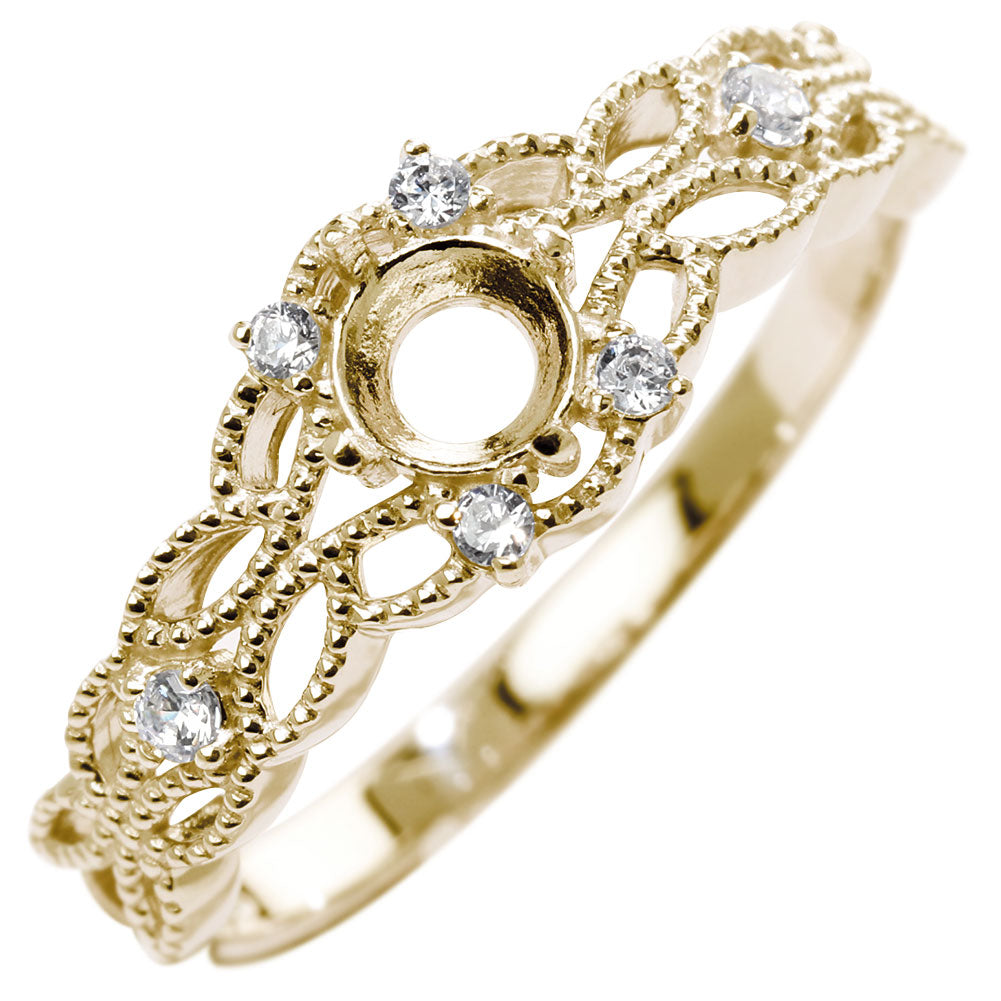 K18 レディース リング 透かし リーフデザイン ダイヤモンド リング枠 指輪 4mm ミル打ち Pt900 K10 SV925 華やか 思い出 形見 リメイク ジュエリー 贈り物 (品番 mr-0447-kw)