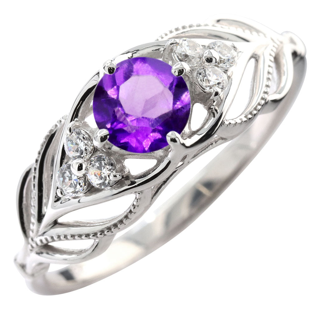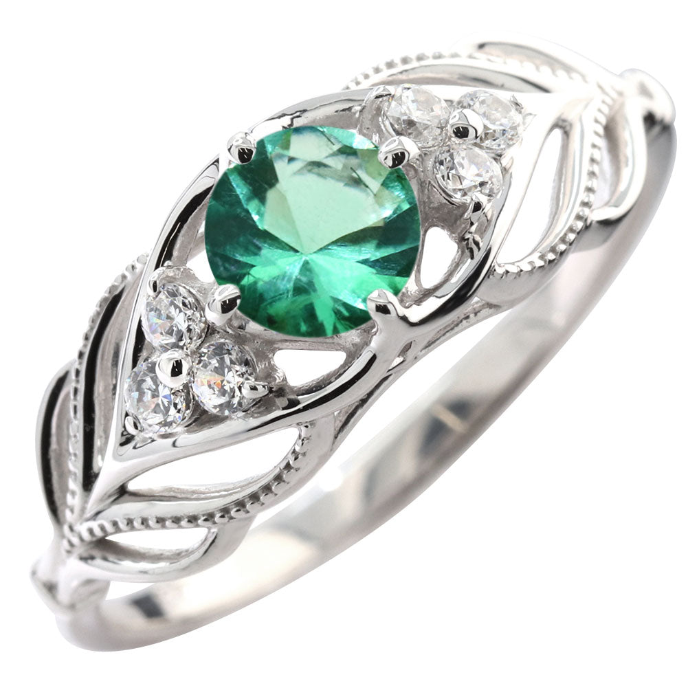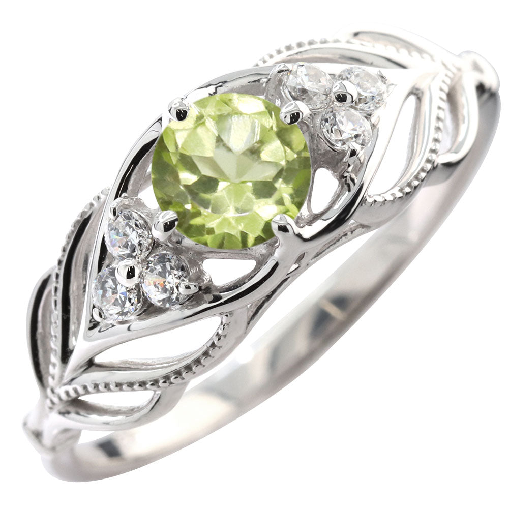 レディース リング 選べる誕生石 指輪 5mm リーフ 綺麗 ミル打ち 女性 おすすめ クラシック ジュエリー 日本製 アニバーサリープレゼント エレガント (品番 mr-0490)