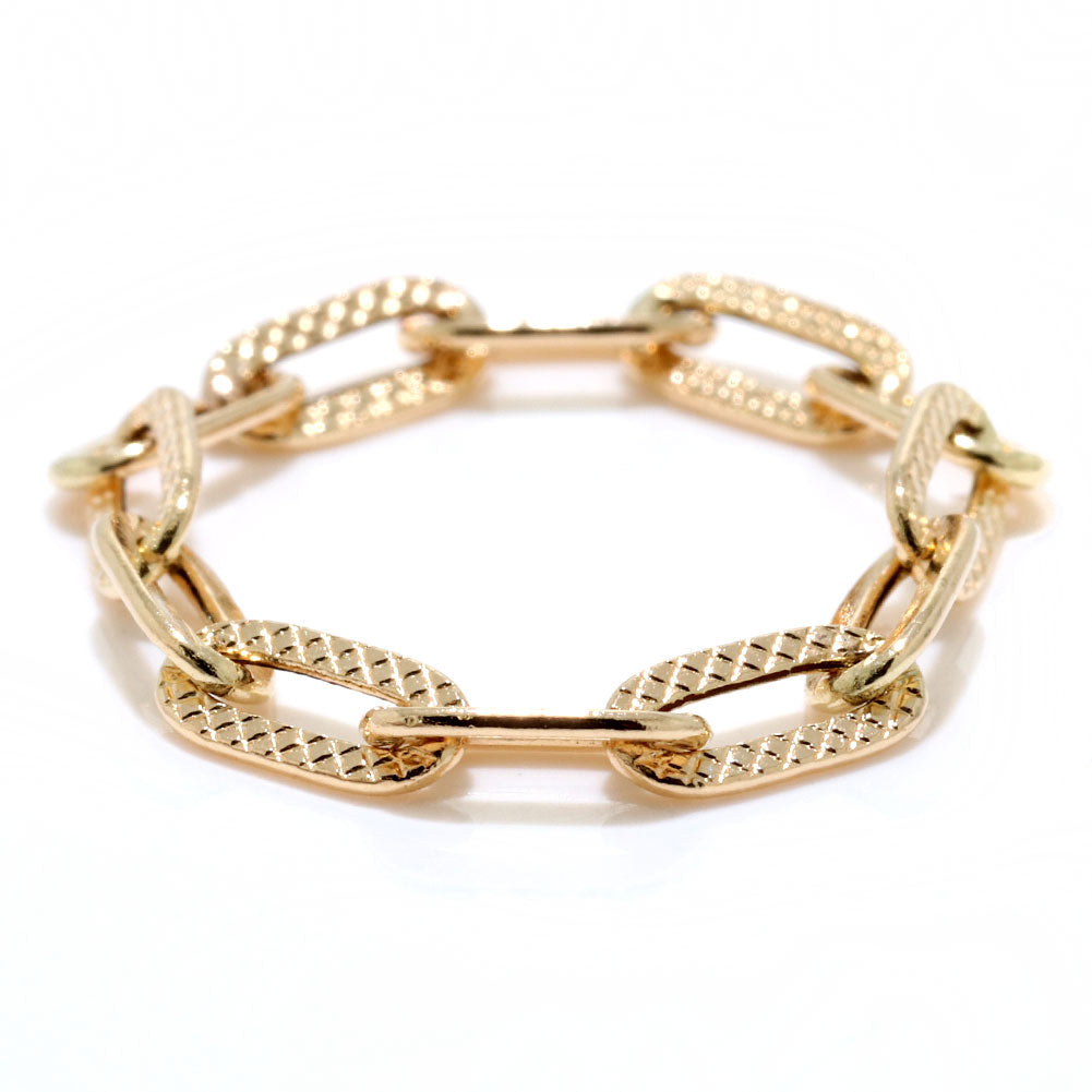 18金製の中空、プレイドペーパークリップデザインのチェーンリングです。気品と高級感をプラスしたプレイド(格子柄)デザインはシーンを選ばず指先を華やかにしてくれます。