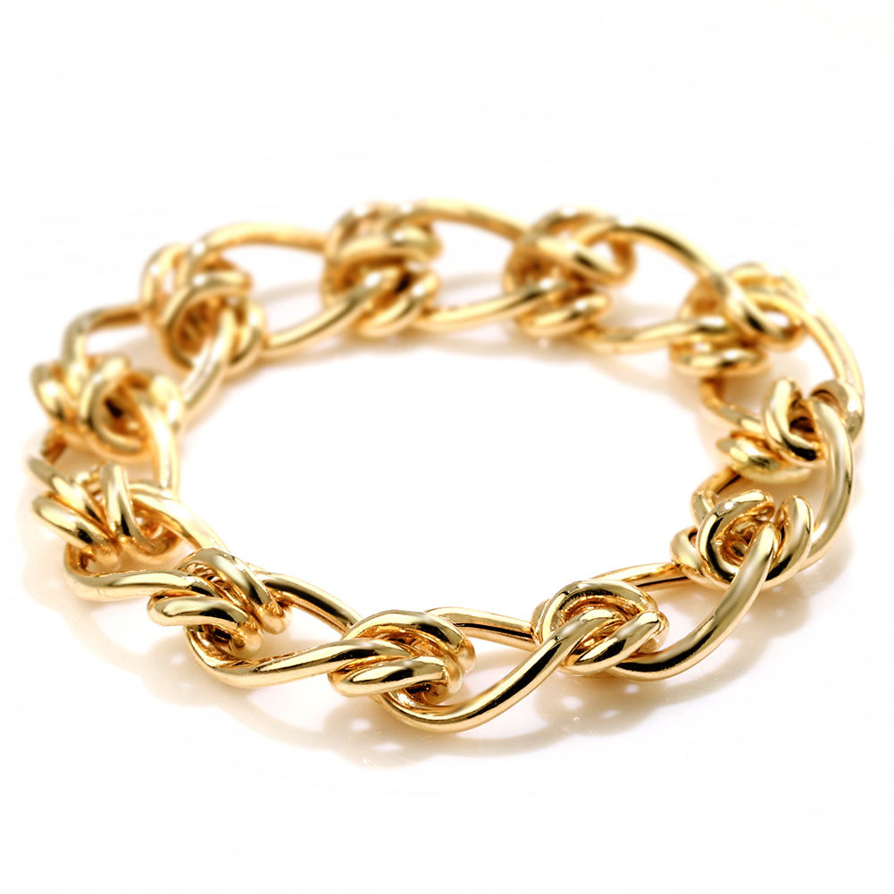 18金製の中空、チャンキーデザインのチェーンリングです。存在感のあるボリューミーで個性的なデザインは、指先を華やかに引き立てて、モードな印象に仕上げてくれます。長くご使用いただけるエイジレスなデザインは送る相手を選びません。